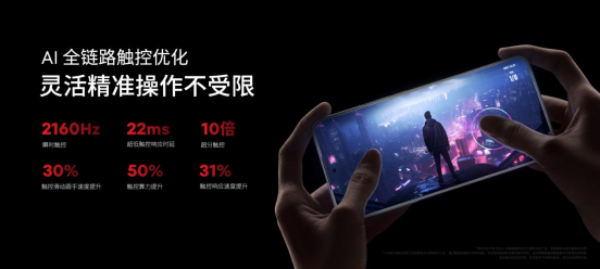 而至高 144Hz 高刷新率和 1-120Hz 自適應(yīng)高刷技術(shù)的加持,使得用戶可根據(jù)顯示內(nèi)容動(dòng)態(tài)調(diào)整手機(jī)屏幕刷新率。搭配全面優(yōu)化的 AI 全鏈路觸控技術(shù),響應(yīng)速度提升 50%,同時(shí)達(dá)到 10 倍超分觸控體驗(yàn),通過(guò)精細(xì)的觸摸分辨率增強(qiáng),實(shí)現(xiàn)更加精準(zhǔn)和靈敏的操作體驗(yàn)。
