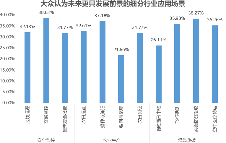 在安全監控場景中,低空經濟預計將實現更廣域的實時監控和快速響應,極大增強公共安全和災害預警能力。調查顯示,在安全監控方面,交通監控更具發展前景。