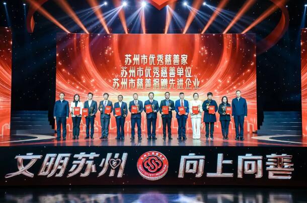1月9日,“文明蘇州 向上向善” 2025年蘇州市新年慈善晚會在蘇州廣電總臺隆重舉行。市委書記劉小濤,市委副書記、市長吳慶文,市政協(xié)主席朱民,市委副書記黃愛軍出席晚會并為獲獎代表頒獎。中國慈善聯(lián)合會副會長、通鼎集團董事長沈小平再獲“蘇州市優(yōu)秀慈善家”榮譽稱號。