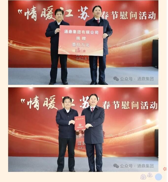 捐贈儀式由省慈善總會副會長兼秘書長戚錫生同志主持,通鼎集團沈小平代表公司向江蘇省慈善總會捐贈善款100萬元,戚錫生副會長代表省慈善總會接受捐贈并向愛心單位及個人頒發捐贈證書。該項資金將全部用于開展省“情暖江蘇”各地春節慰問活動,旨在進一步匯聚慈善力量,營造崇德向善的良好氛圍,為困難群眾奉獻愛心、排憂解難。