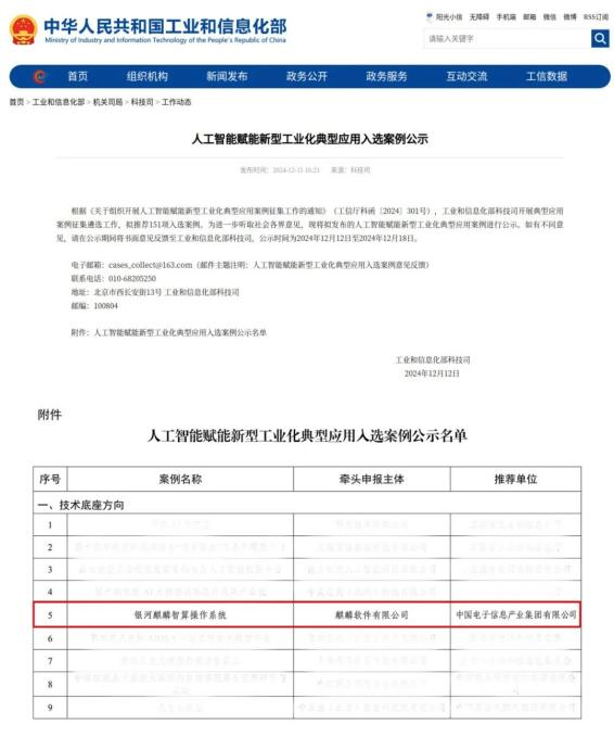 近日,工業和信息化部官方網站發布《人工智能賦能新型工業化典型應用案例》公示信息,由國產操作系統國家隊麒麟軟件有限公司提交的“銀河麒麟智算操作系統”作為“技術底座”方向唯一智算操作系統成功獲選。這一殊榮充分彰顯了麒麟軟件在人工智能與新型工業化融合領域的創新實力和領先地位。這不僅意味著麒麟軟件自身技術達到了行業領先水平,更表明國產操作系統已成為國家軟實力的象征,在國家科技發展戰略中占據著舉足輕重的地位。