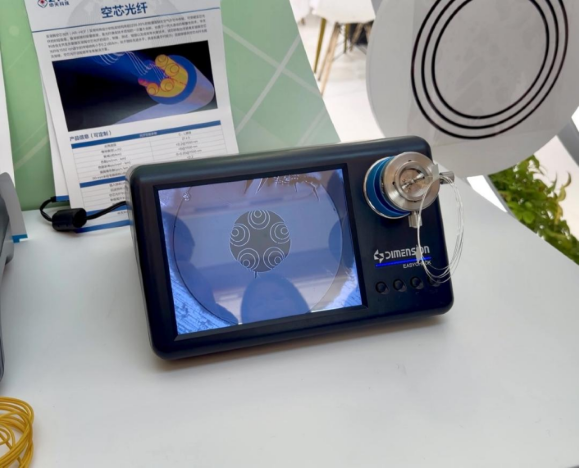 這款實現突破的空芯光纖產品也在大會期間中天科技展臺上吸引眾多行業嘉賓的關注。作為下一代光通信的顛覆性技術,中天科技自主開發并掌握反諧振空芯光纖的設計、制備、測試、熔接以及成纜等關鍵技術,成功研制出雙層嵌套反諧振空芯光纖,其在1550 nm波長的傳輸損耗小于0.2 dB/km,處于國際先進水平,具備批量交付能力;且能夠提供空芯光纖光纜及熔接、空芯光纖適配器等全套解決方案。