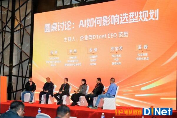 嘉賓分享之后,以“AI如何影響選型規劃”為主題的圓桌討論正式開始。討論由企業網D1net CEO范脡主持,國機集團、廣州汽車集團、江蘇醫藥、恒力電機、紅豆集團等企業的信息部高管參與了討論。