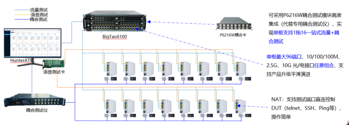 當使用BigTao6100測試系統+ P6216W時可以完成多任務一站式融合測試,具體包括: