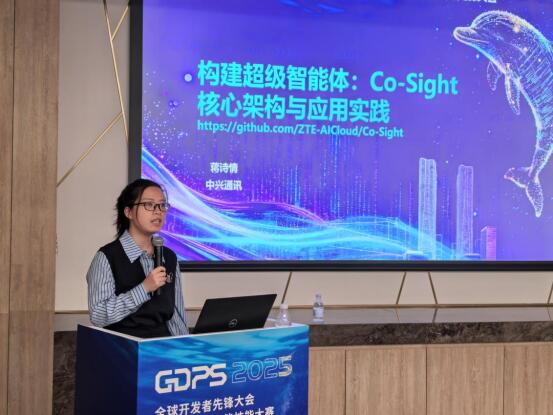 技術如何轉化為生產力?中興通訊高級工程師蔣詩情帶來了《構建超級智能體:Co-Sight 核心架構與應用實踐》的分享,展示了Co-Sight的工業級落地能力。
