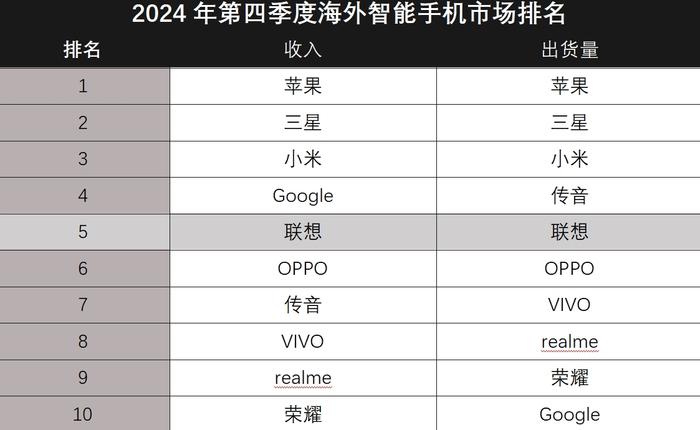 2月11日,國際數據公司IDC公布了最新的海外市場智能手機排名,聯想成功躋身前五,并且實現營收和出貨量雙前五的好成績。