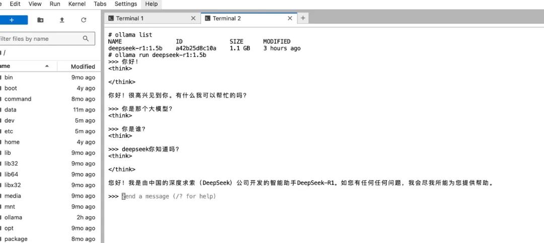 3、資源創建成功后通過 Jupyterlab 進入實例,啟動 Ollama 即可與之對話