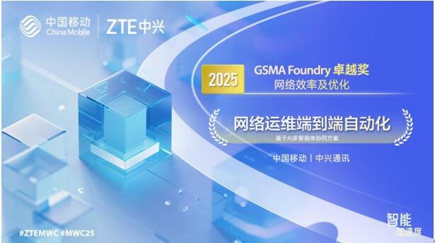 【西班牙,巴塞羅那,2025年3月5日】在MWC25巴塞羅那期間,GSMA舉辦了2025年度GSMA Foundry卓越獎頒獎典禮。中國移動與中興通訊聯合推出的“多智能體協同賦能端到端網絡自動化運維”方案及案例獲得了GSMA Foundry網絡效率及優化大獎,充分體現了通信大模型在提升端到端網絡運維效率方面的創新價值。