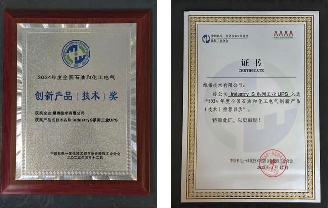 前不久,在第九屆全國石油和化工電氣技術大會上,維諦技術(Vertiv)旗下的Vertiv™ Liebert® Industry S 系列工業UPS,憑借卓越性能和出色的工業適應性,榮獲“2024年度全國石油和化工電氣創新產品(技術)”大獎。