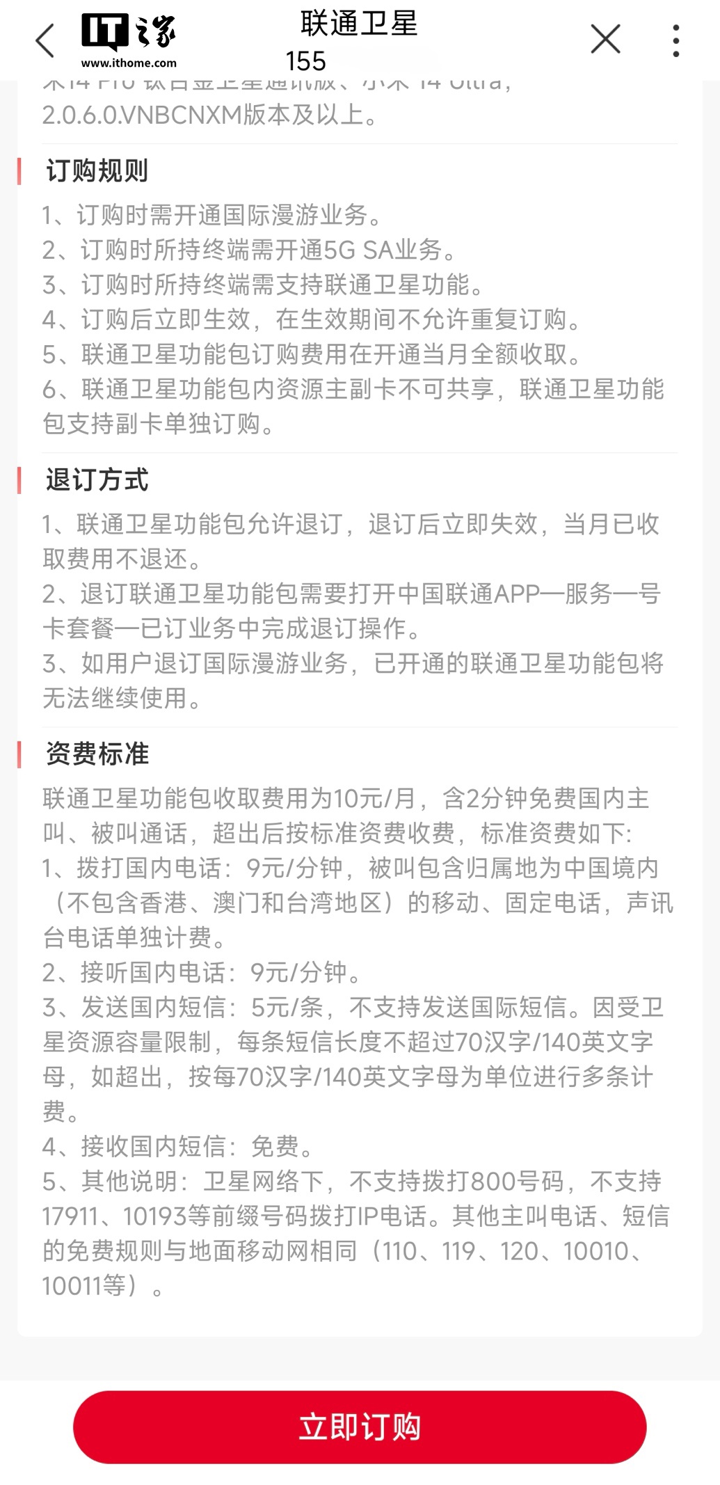 其他說明:衛(wèi)星網(wǎng)絡(luò)下,不支持撥打 800 號碼,不支持 17911、10193 等前綴號碼撥打 IP 電話。其他主叫電話、短信等的免費(fèi)規(guī)則與地面移動(dòng)網(wǎng)絡(luò)相同(110、119、120、10010 和 10011 等)