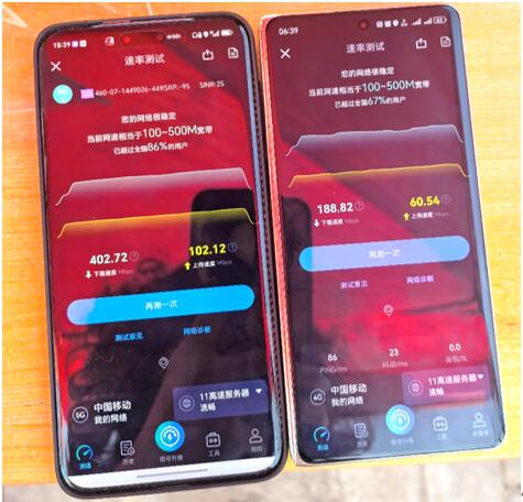 現場實時5G-A與5G手機網速對比圖