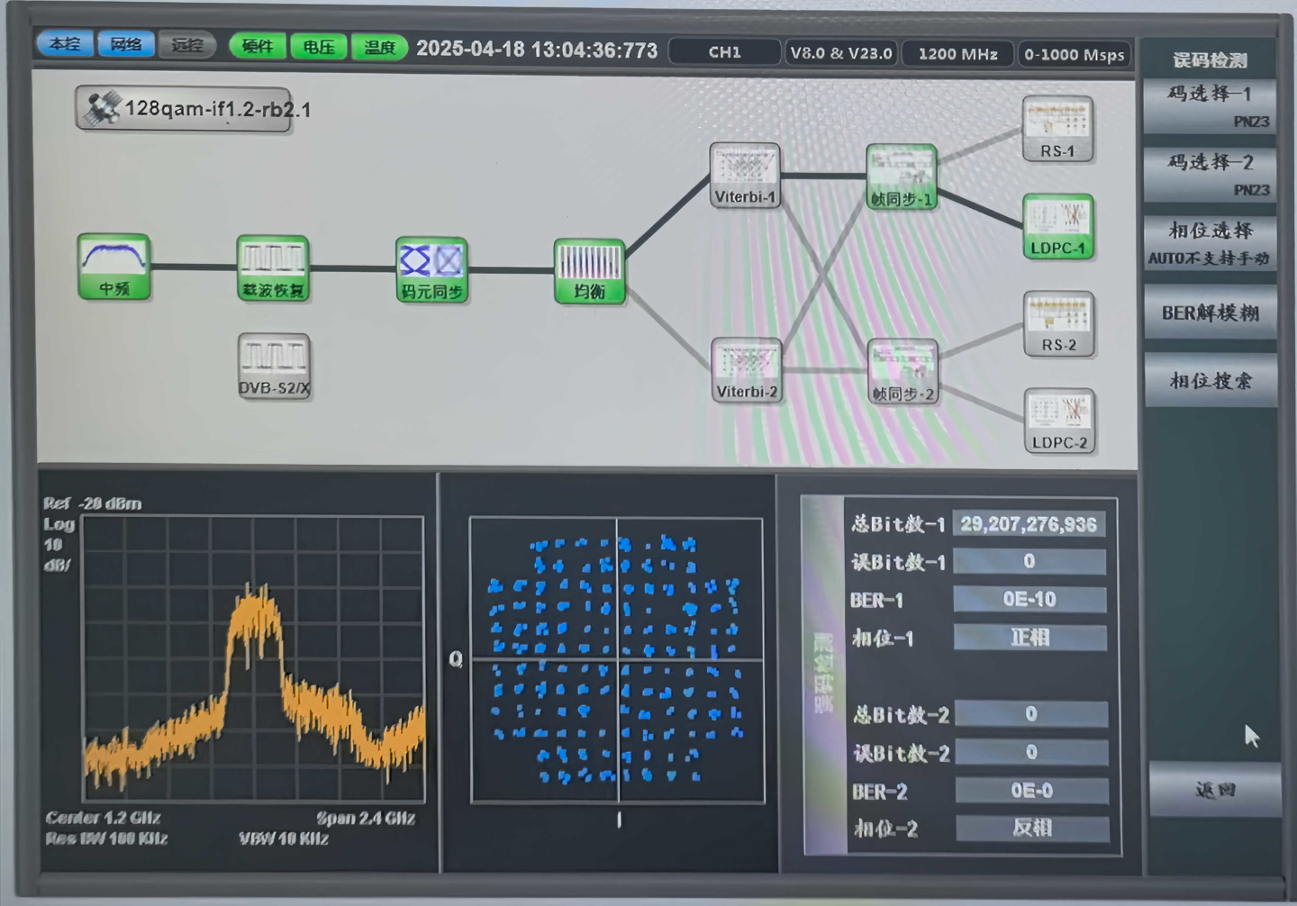 實驗項目負責人、空天院高級工程師張雨濛介紹,三個階段的實驗結果表明,利用地面系統現有信道設備配合新研制的高階體制調制解調器,在 128QAM 高階體制下,可實現 X 頻段 2100Mbps 單通道碼速率通信,星座圖無明顯畸變,誤碼率可歸零,充分驗證了高階體制高碼率數據傳輸的技術可行性。