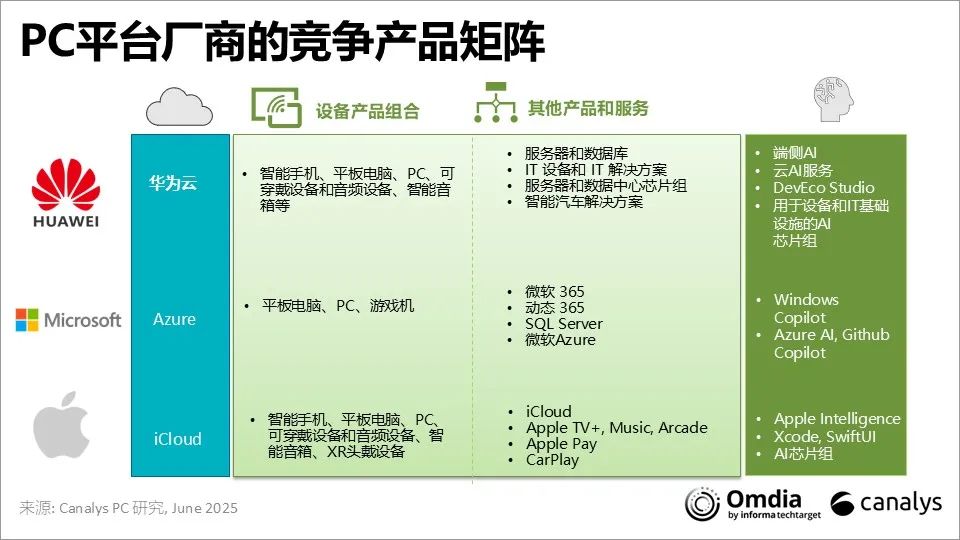 另外,華為 2024 年在中國出貨約 420 萬臺 PC(筆記本占 380 萬臺),并于 2025 年 5 月正式發(fā)布首批搭載鴻蒙 OS 5 的 PC 設(shè)備,這是其實(shí)現(xiàn)軟硬件全棧自研長期目標(biāo)的關(guān)鍵里程碑。首批 PC 產(chǎn)品包括兩款主力機(jī)型: