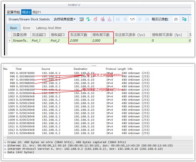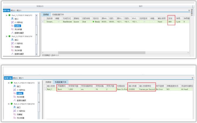 在1G端口的端口模式下創建一條480 Bytes線速突發流量,打4 ms,停16 ms(突發間隔),發送2次突發流。