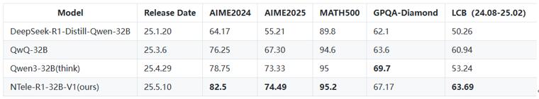 在開源的6個大模型中,NTele-R1-32B-V1電信大模型成為焦點。該模型基于DeepSeek-32B-Distill架構訓練,僅用800個精心篩選的樣本(含400個數學問題與400個代碼任務),就在多項權威測評中實現對行業標桿模型的超越。數據顯示,其在AIME2024測評中得分82.5,超越Qwen3-32B的78.75;在MATH500測試中準確率達95.2%,領先同類模型1-2個百分點。這種“小樣本高效訓練”能力,為降低AI開發成本提供了全新范式。 中興通訊AI研發中心負責人解釋:“NTele-R1-32B-V1 是從 DeepSeek-32B-Distill訓練的,實現了‘少而精’的訓練效果。”目前,該數據集已同步開源,開發者可直接獲取用于模型優化。