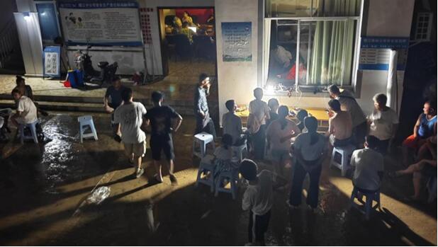 當時間回到6月24日中午,在榕江縣城古州北路的中國移動貴州公司黔東南榕江分公司大院內,堆積的防洪沙袋也擋不住上漲的洪水。很快一樓的發電機房就因為進水停止了運行,四樓機房有備用電力保障還在繼續運行,支撐著這一片的信號。全城停電的24日晚上,一則消息在榕江人的朋友圈傳開:“手機需要充電的朋友,可到榕江移動公司來充電!”收到消息的群眾趕來,圍坐在一起,給手機充電,給在外的親友打去電話報平安。在周圍的一片漆黑中,院里靠發電機亮起的燈光格外明亮。
