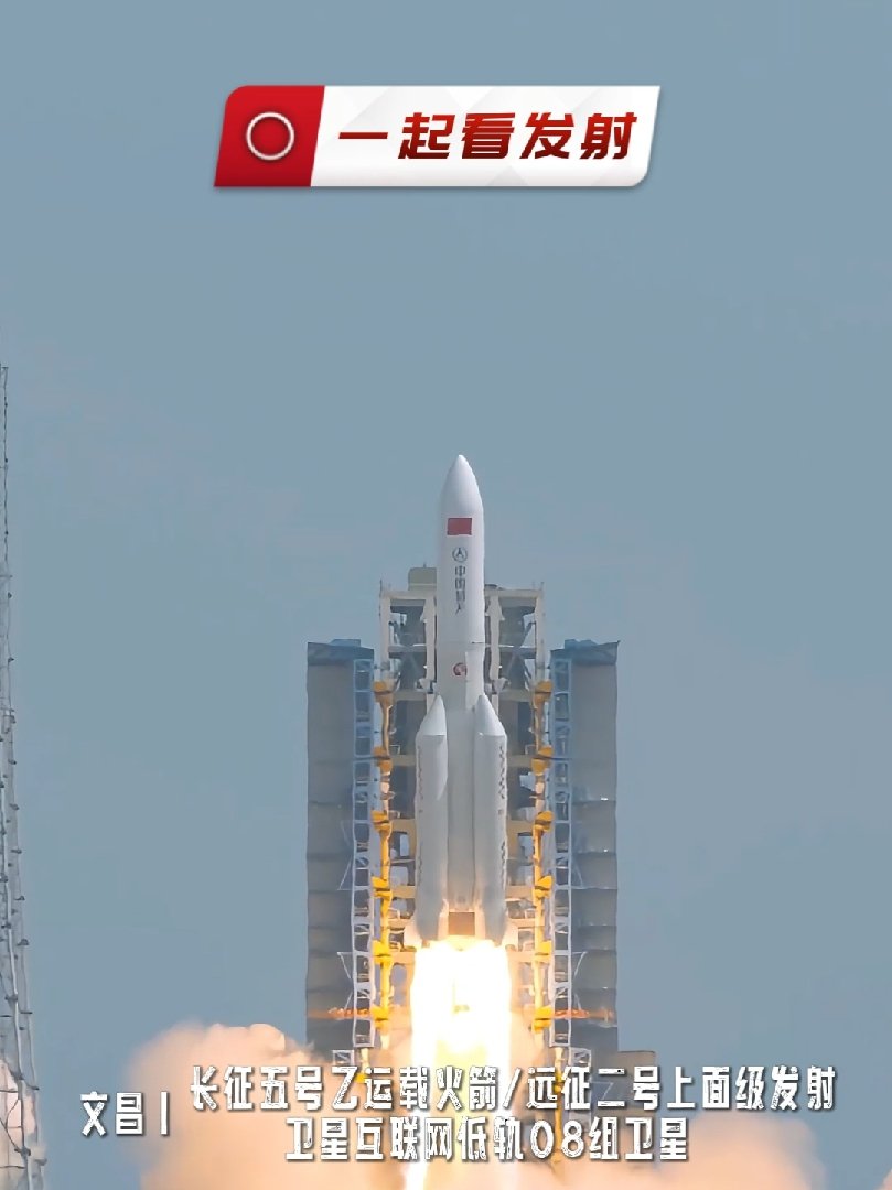 我國現役推力最強:長征五號乙遙八運載火箭成功發射衛星互聯網低軌 08 組衛星