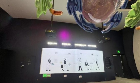 在五層的“宇宙探源”展廳,先進的投影技術與數字手段引導觀眾從“粒子起源”穿越至廣袤宇宙,領略微觀與宏觀世界的奧秘。該展廳部署了24臺科視DWU860-iS激光投影機,為“粒子起源”、“寵物定制”、“細胞”、“蛋白質結構”、“生命方舟”、“黑洞的奧秘”、“雜交水稻”、“時空之網”及“宇宙”等互動展項提供震撼生動的視覺呈現。