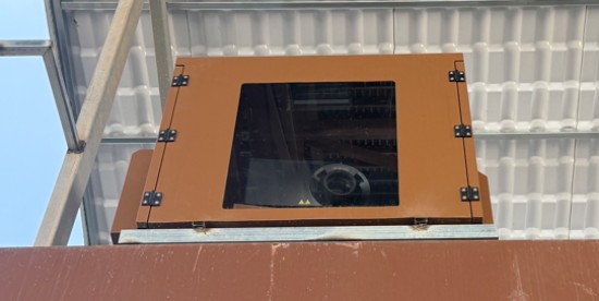 建業顯示團隊為城墻投影進行調試(左);安裝在防水外殼內的科視Christie DWU19-HS激光投影機(右)