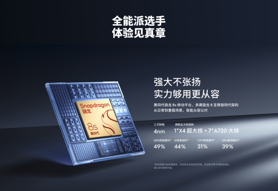 性能方面,魅族 22 搭載第四代驍龍 8s 移動平臺,采用 4nm 工藝,CPU 性能提升 31%,GPU 性能提升 49% , AI 能力提升 44%,無論日常應用還是重度游戲均可從容應對。機身內部配備 4500mm² VC液冷系統,高效覆蓋核心發熱區域,長時間使用依舊穩定。
