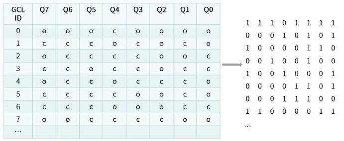 如圖1所示各隊列的門的開/關狀態由GCL精確控制。GCL可以有多行,GCL根據基準時間BaseTime,循環執行,每CycleTime執行一次。