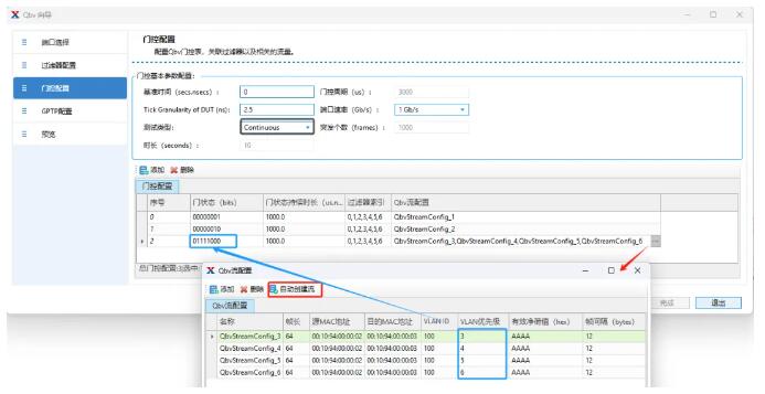 配置Qbv流量,點擊自動創建流量會自動生成對應優先級的Qbv流,也可以點擊“添加”手動創建其他流量,配置測試類型為Continuous。