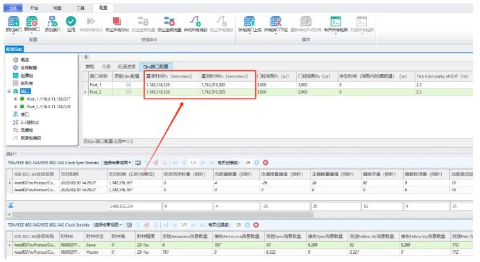 啟動Qbv流量后,測試儀將在設定的基準時間到達后開始發送流量。通過查看測試儀提供的詳細統計信息,可進行如下分析:
