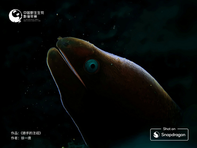 本屆年賽中,驍龍手機組特別獎再次展現了移動影像在自然表達中的獨特魅力。攝影單元冠軍作品之一《獵手的注視》由徐一唐創作,畫面中恰到好處的輪廓光還原了裸胸鱔——這位夜間獵手的壓迫感。攝影師依托裸胸鱔晝伏夜出的習性,提前在其棲身的洞口布置燈光,耐心靜待拍攝目標以完美角度進入取景框。而搭載驍龍平臺的手機,不僅憑借卓越的暗光拍攝能力,在低光照環境下精準呈現生靈的細節,更以強勁的長續航表現,支撐攝影師完成長時間蹲守拍攝。