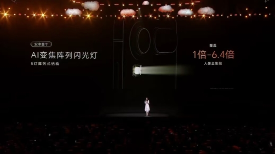 針對人像拍攝痛點,新機搭載安卓首個 AI 變焦陣列閃光燈,5 燈 X 陣列結構可覆蓋 23mm-148mm 全焦段,中心照度達 200Lux,能根據拍攝焦段智能調節光線。疊加 AI 閃光大師、靈感幫拍、AI 追色等功能,普通用戶也能輕松拍出質感人像。