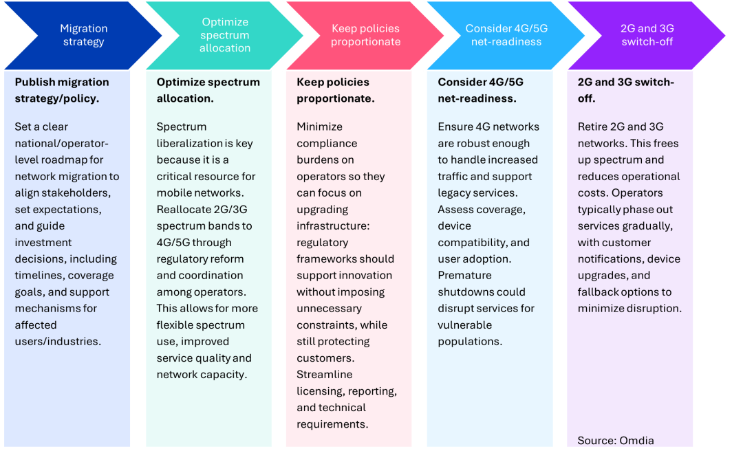 McBride指出:“隨著2G與3G加速退網,消費者保護已成為監管機構的主要關注點。老年人、農村人口、IoT用戶以及使用遺留設備的用戶面臨最大服務中斷風險。為此,監管機構開始要求實施清晰透明的溝通策略,包括退網時間表、替代服務方案、遷移計劃以及技術支持,以確保平穩過渡。”