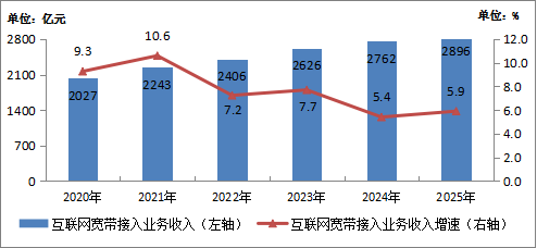 圖1-2 2020—2025年互聯網寬帶接入業務收入情況