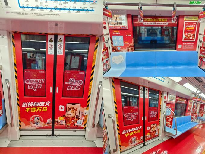 在南京地鐵1號線的天翼智鈴專列上,一句“智云江蘇 AI進萬家”道出了江蘇電信的新年心意。從“千變萬馬”的彩鈴自定義,到“一馬當先”的AI體驗,江蘇電信正以南京地鐵為媒,傳遞著天翼智鈴的創意魅力。
