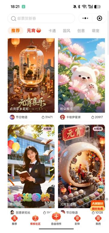 微信搜索并打開“天翼智鈴”小程序,海量模板庫任你挑選:國潮風韻、萌寵治愈、卡通趣味……風格百變,總有一款擊中你的“心巴”。更有馬年專屬、元宵主題創意模板扎堆上線,花燈映月、湯圓滾滾、闔家團圓等元宵經典元素氛圍感拉滿。一鍵復制模板即可快速使用,也能隨心修改文案,輕松打造貼合節日氛圍的專屬彩鈴,讓來電等待瞬間充滿新春元宵的喜慶氣息,創作門檻一降再降,人人都能輕松上手!