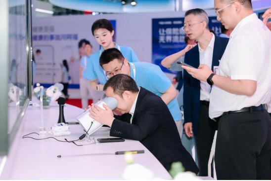 “請眼睛注視前方,不要眨眼。”在工作人員的指引下,觀眾們正排隊體驗“3分鐘眼底體檢”。“AI眼底照相機”是一款專為基層醫療、體檢中心設計的智能眼底疾病與重大慢病預警系統,集成自動對焦、自動拍攝與AI實時分析能力,3分鐘內即可完成從圖像采集到報告生成全流程,可識別30余種眼病和10余項全身慢病風險,實現“眼底一張照,健康早知道”。